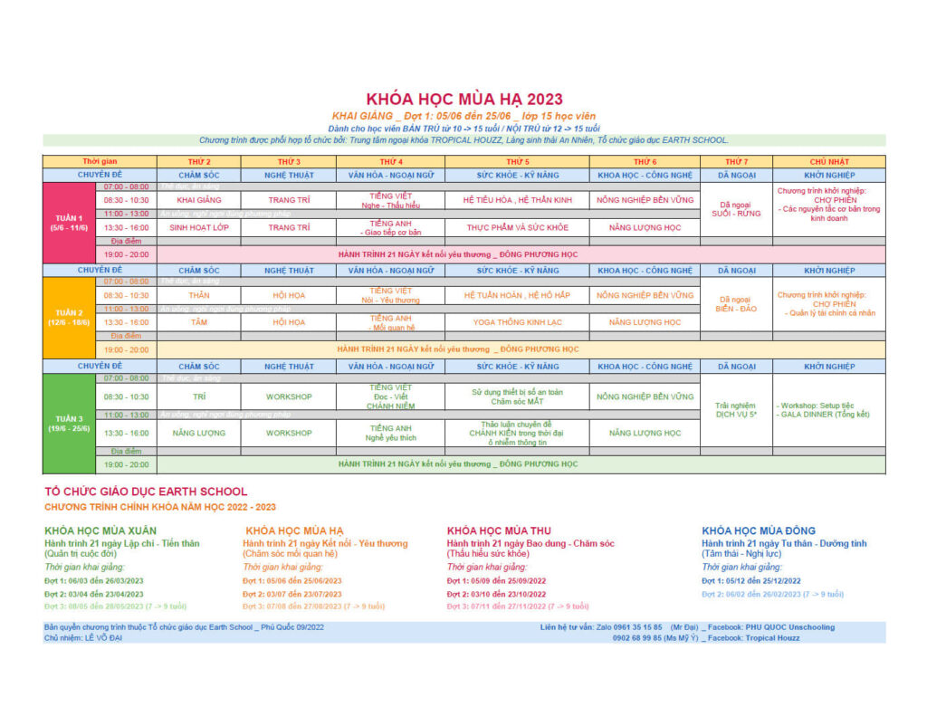 KHÓA HỌC MÙA HẠ 2023